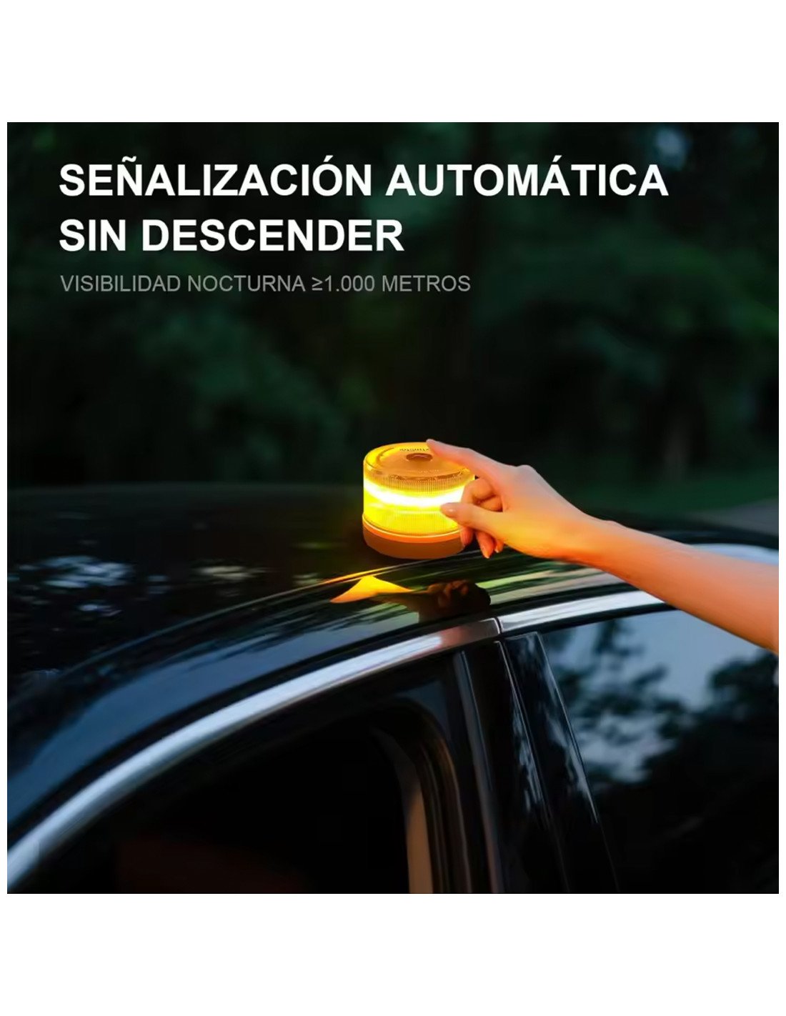 - Fácil de Usar sin Salir del Vehículo: Gracias a su base magnética potente, la baliza puede colocarse en el techo del coche en cuestión de segundos sin necesidad de salir del vehículo, evitando situaciones de riesgo en la carretera. Su tamaño compacto y ligero permite guardarla fácilmente en la guantera, el maletero o incluso en la puerta del coche.